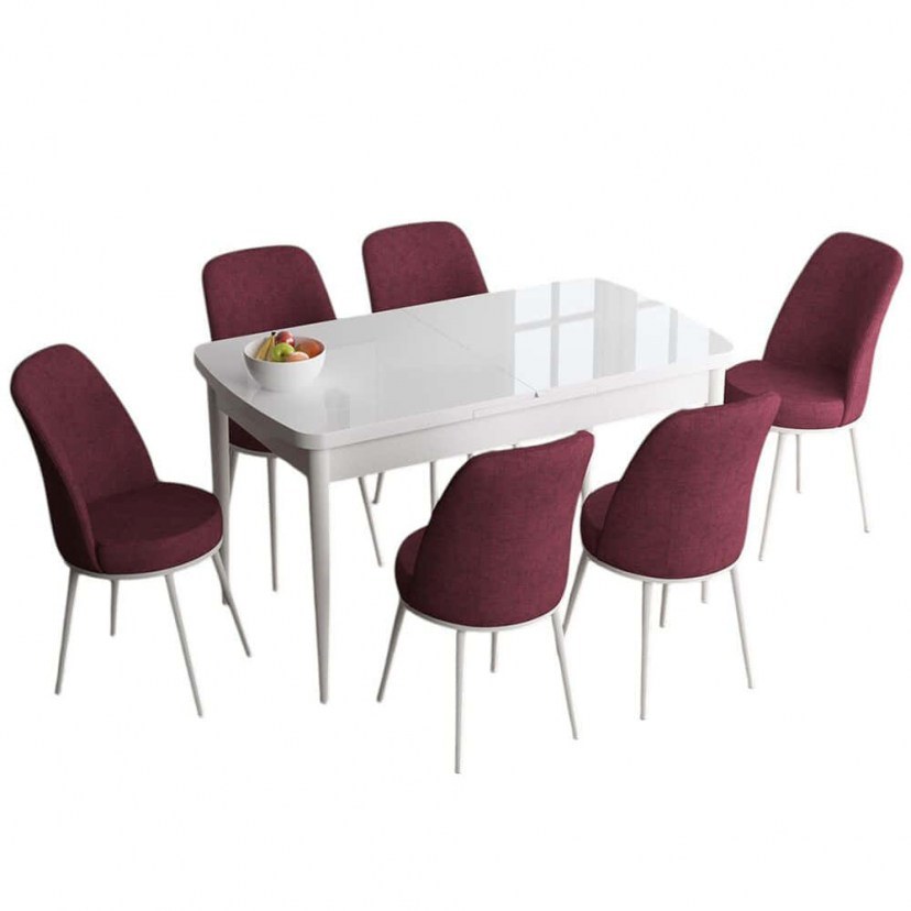 1 Σετ Τραπεζαρία: 1 Τραπέζι: Μήκος: 114/144 cm, Πλάτος: 70 cm, Ύψος: 78 cm & 6 Καρέκλες: Μήκος: 45 cm, Πλάτος: 42 cm, Ύψος: 91 cm