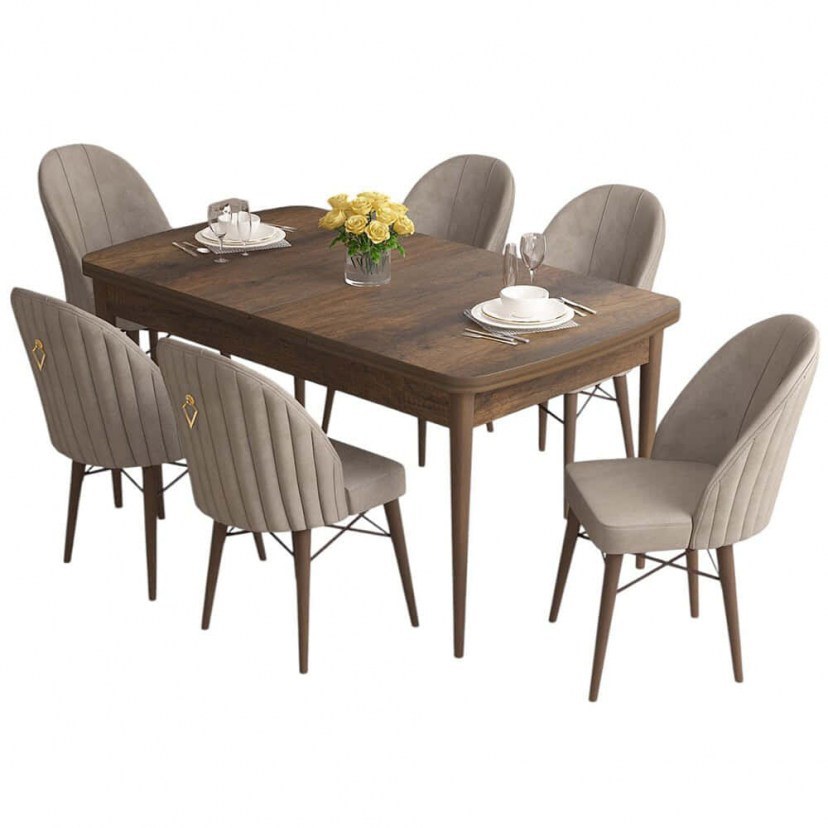Extendable Dining Roz (Set 7Pcs) 240CHR2575 132/170x80x78cm Walnut-Cappuccino
