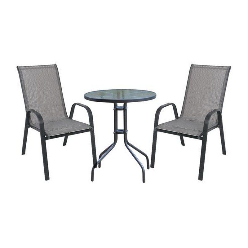 Η Τραπεζαρία Κήπου Rio Ε270,5S είναι η ιδανική αγορά για εσάς, που λατρεύετε να απολαμβάνετε τον καφέ ή το γεύμα σας σε εξωτερικό χώρο. Το καλαίσθητο designτης θα εναρμονιστεί με κάθε διακόσμηση. Ο σκελετός του τραπεζιού είναι μεταλλικός, ενώ η επιφάνειά του είναι από waterwaveγυαλί. Οι πολυθρόνες κατασκευάζονται από μέταλλο και textilene και είναι στοιβαζόμενες. Το προϊόν παραδίδεται αμοντάριστο σε εργοστασιακή συσκευασία.