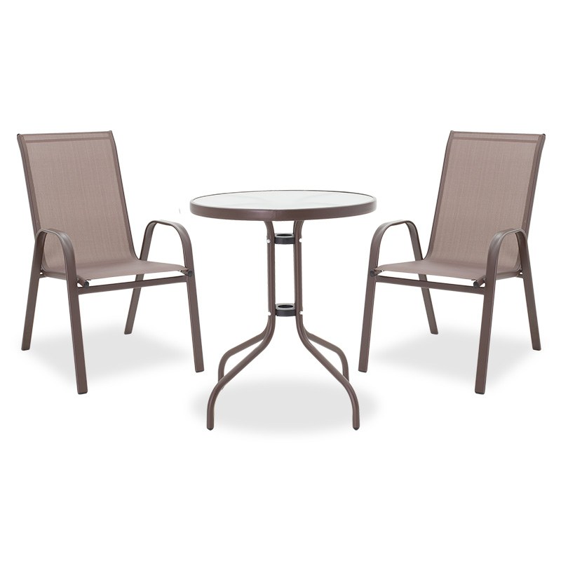 Do you want to get a sturdy dining set for your balcony or garden that will upgrade your space? A nice proposal is the Watson-Calan Garden Dining Set 200-000308 which includes two armchairs and a table. The frame of the table is made of excellent quality metal and the main surface of the table is made of 5mm glass. The armchairs are stackable to save more space. The main body of the chair is made of excellent quality textilene. Textilene is a fabric with high resistance to solar radiation and moisture, while at the same time it allows the skin to "breathe", thus creating comfort in the seat. The chairs are delivered assembled in factory packaging and the table unassembled with assembly instructions. Quality: