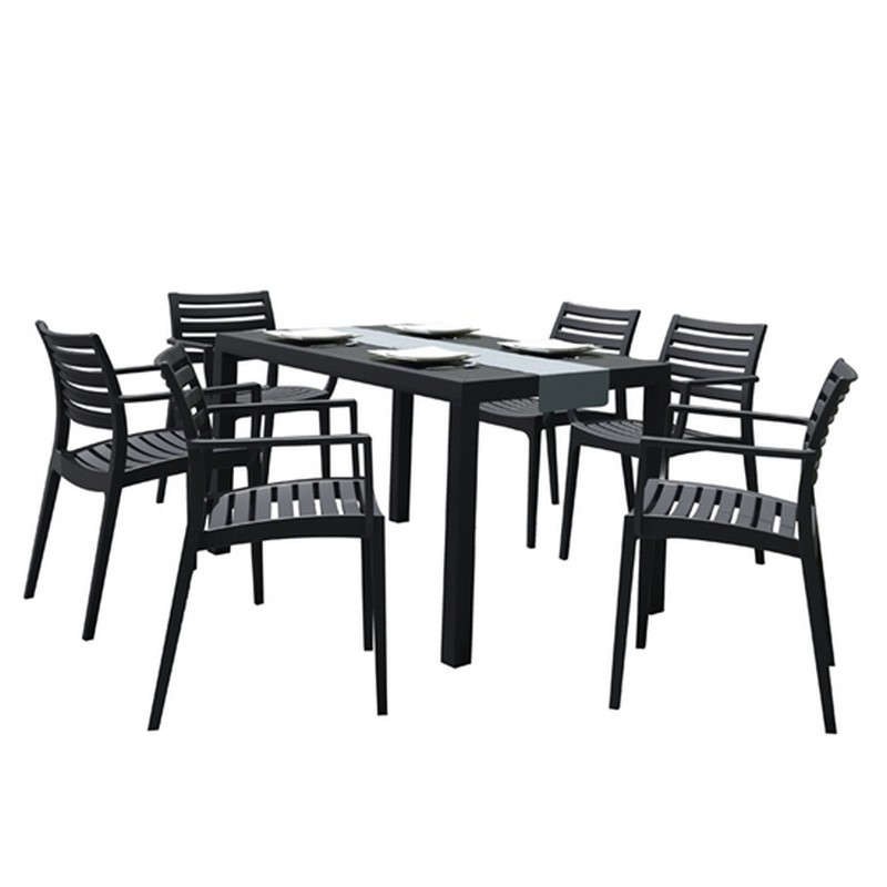 The Ares/Artemis 20.9998 Dining Set is ideal for indoor and outdoor spaces, as it is made of polypropylene that is highly resistant to time and weather conditions. It is a large table, which is flanked by six armchairs with a modern perforated design. The armchairs have a special UV protection treatment and are stackable. The product is delivered unordered. Make it yours now at the best price on the market, with a simple click on designdrops!
