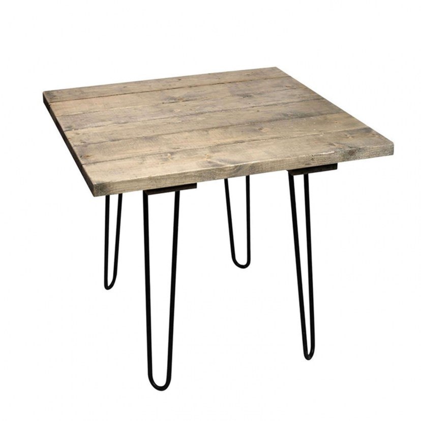 A beautiful table can enhance your space in the best way, so get the AST543 Table. It has finely detailed metal legs that elegantly elevate the large wooden surface in the room. Combine it with metal or wooden chairs and create a wonderful dining set. The product is delivered unassembled. Quality: Metal & Wood. Dimensions: 1 Table: Length: 85 cm, Width: 85 cm, Height: 75 cm.