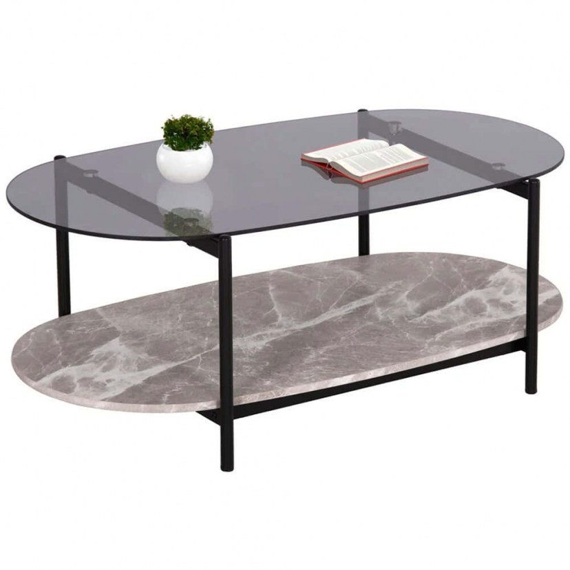 The Kitty Coffee Table HM18040 is an excellent combination of modern aesthetics and functionality. Its two surfaces rest on a sturdy black metal frame, offering both durability and elegance. The top surface is made of safety glass in a translucent tinted finish, offering a sense of refined luxury and contemporary design. The lower surface of melamine in gray marble coloring gives a natural feeling, while the marble effect enhances the timelessness and elegance of the table. The Kitty HM18040 table is ideal for those who wish to give their space a sophisticated, contemporary character with a special combination of materials and finishes. The product is delivered unordered.
