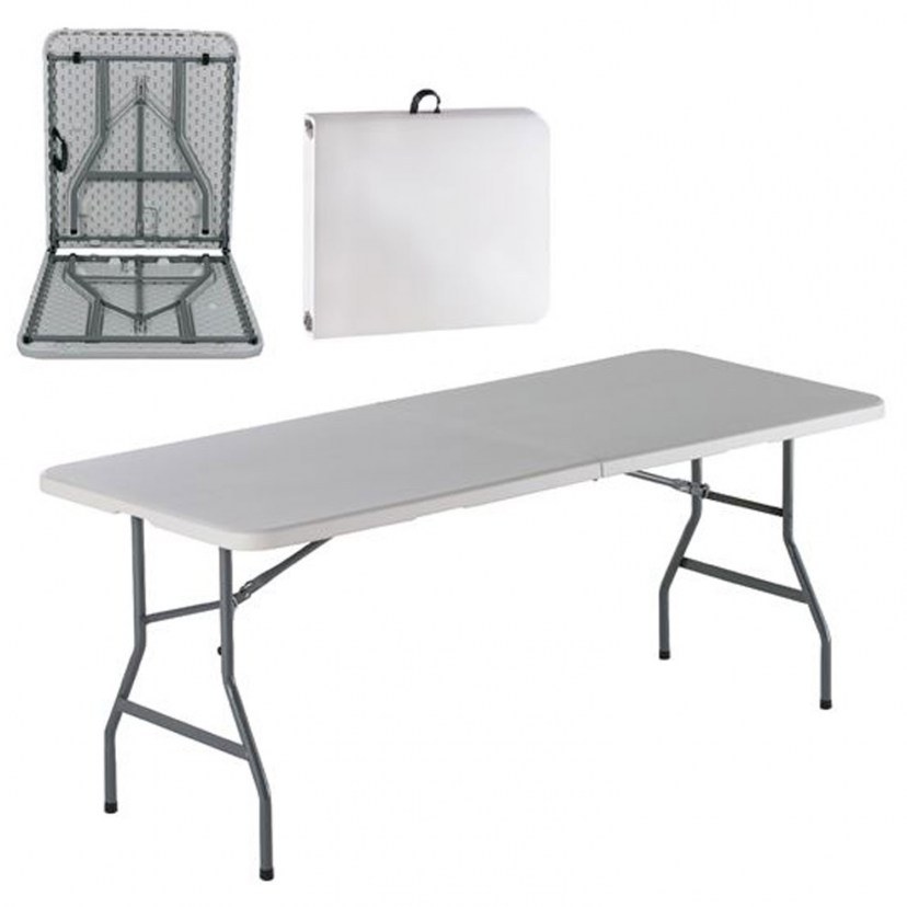 The Blow EO179 table is foldable with a metal base. It is extremely durable, can be easily transported and stored as it becomes a suitcase. It is an ideal choice for professional and home use. Choose from our collection the chairs that suit you to create a complete set. Assembly instructions are included in the product packaging. The dimensions of the table are: L: 180cm W: 74cm H: 74cm. The quality is plastic and metal. The package includes 1 table.