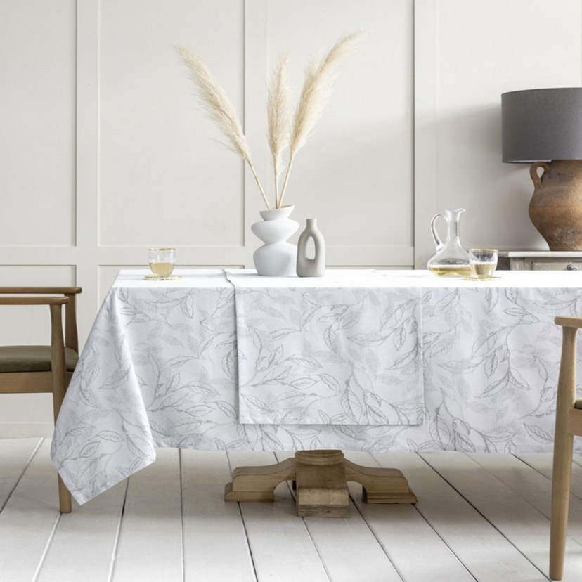 Upgrade the aesthetics of your kitchen or dining room with the Florelia Tablecloth. It has an embossed pattern with leaves, which creates a sense of calm and warmth. With a composition of cotton, linen, polyester and viscose, it gives unique softness, durability and a perfect fit on the table. It is resistant to frequent washing, maintaining its shape and color.