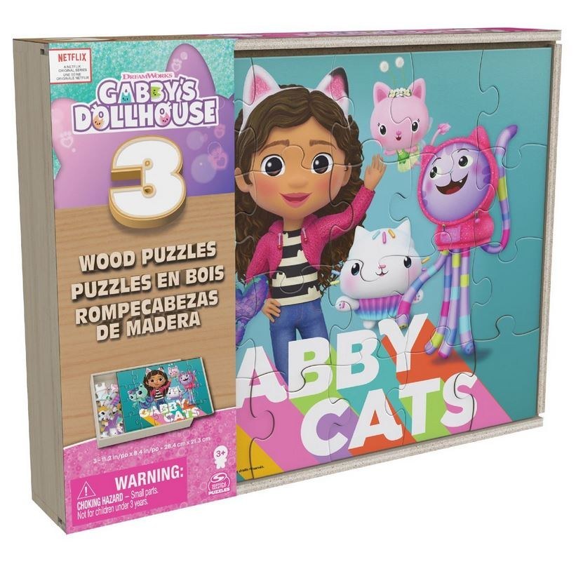 For the little fans of fearless Gabby, Pandy, and Kekaki, create a cat-tastic puzzle collection with this amazing Wooden Puzzle Set The Dollhouse of Gabby 6066549. The set includes three wooden puzzles with different levels of difficulty, offering exciting challenges for all children. Each puzzle is decorated with cat-themed images like the beloved Gabby Cats, providing hours of fun. With 12 to 16 pieces per puzzle, it is an ideal choice for children aged 4-8 years old. Made from high-quality wood for long-lasting durability and safe play.