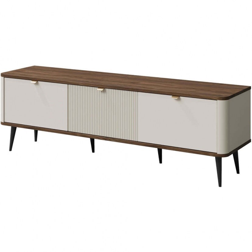 Προσδώστε μια αίσθηση διαχρονικής κομψότητας στο σαλόνι σας με το Έπιπλο Τηλεόρασης Marly Reg 162908469, μια εξαιρετική επιλογή ευρωπαϊκής προέλευσης που ισορροπεί ανάμεσα στο κλασικό και το μοντέρνο στυλ. Θα λατρέψετε τις απαλά στρογγυλεμένες πλευρές του και τις διακριτικές αυλακώσεις στην πρόσοψη, οι οποίες σε συνδυασμό με τα μεταλλικά πόδια και τις αντίστοιχες λαβές, δημιουργούν ένα σύνολο υψηλής αισθητικής. Η στιβαρή του κατασκευή από μοριοσανίδα και MDF πάχους 18 mm, με τελείωμα από PVC για επιπλέον προστασία, σας εγγυάται ένα ανθεκτικό και λειτουργικό έπιπλο που θα φιλοξενήσει τον εξοπλισμό σας με την ποιότητα που σας αξίζει. Το προϊόν παραδίδεται αμοντάριστο, σε εργοστασιακή συσκευασία με αναλυτικό οδηγό συναρμολόγησης.