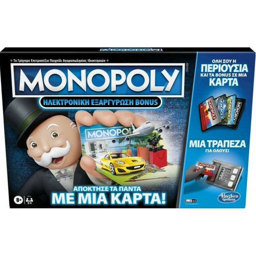 Το Επιτραπέζιο Παιχνίδι Monopoly Ηλεκτρονική Εξαργύρωση Bonus E8978 είναι μια σύγχρονη εκδοχή του κλασικού επιτραπέζιου παιχνιδιού, που κάνει ακόμα πιο ξεχωριστή την εμπειρία παιχνιδιού, χάρη στην ηλεκτρονική τραπεζική μονάδα και τις υπόλοιπες δυνατότητας. Κάθε παίκτης διαθέτει μια ηλεκτρονική τραπεζική κάρτα που χρησιμοποιείται για τις συναλλαγές του. Αυτή αντικαθιστά τα χαρτονομίσματα. Με τον συνδυασμό της τεχνολογίας και της στρατηγικής, το παιχνίδι παρέχει μια διασκεδαστική και συναρπαστική εμπειρία παιχνιδιού για όλη την οικογένεια. Καλή διασκέδαση και καλές επαγγελματικές κινήσεις! Λειτουργεί με τρεις AAΑ μπαταρίες που δεν περιλαμβάνονται.