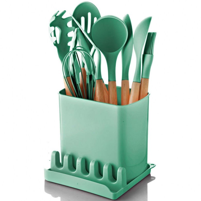 1 Σετ Εργαλεία Μαγειρικής σε Βάση: 9 Εργαλεία Μαγειρικής: Μήκος: 5 cm, Πλάτος: 5 cm, Ύψος: 32 cm & 1 Εργαλείo Μαγειρικής: Μήκος: 5 cm, Πλάτος: 5 cm, Ύψος: 26 cm & 1 Εργαλείo Μαγειρικής: Μήκος: 5 cm, Πλάτος: 5 cm, Ύψος: 24 cm & 1 Βάση Οργάνωσης: Μήκος: 17 cm, Πλάτος: 11 cm, Ύψος: 15,5 cm & 1 Βάση Σφουγγαριού: Μήκος: 16 cm, Πλάτος: 16 cm, Ύψος: 5 cm