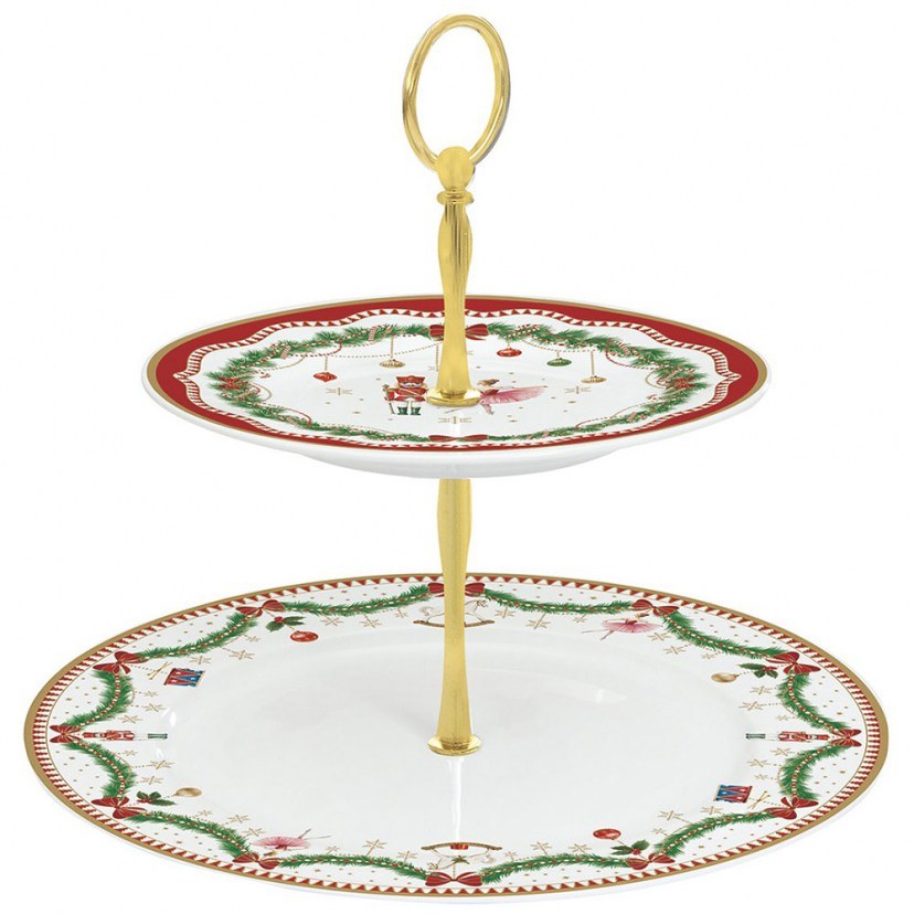 Αναβαθμίστε το γιορτινό σας τραπέζι ή τον μπουφέ σας με τη Διώροφη Εταζέρα Μagie Noel 1105ΜΝΟΕ, ένα κομψό και λειτουργικό κομμάτι φτιαγμένο από εκλεκτή πορσελάνη, ιδανικό για να παρουσιάσετε τα χριστουγεννιάτικα γλυκά και κεράσματα με στιλ. Με τον διώροφο σχεδιασμό της, αυτή η εταζέρα εξοικονομεί χώρο, επιτρέποντάς σας να δημιουργήσετε μια πλούσια και οργανωμένη παρουσίαση, ενώ το γιορτινό μοτίβο προσθέτει μια αίσθηση παραδοσιακής πολυτέλειας και φινέτσας.
