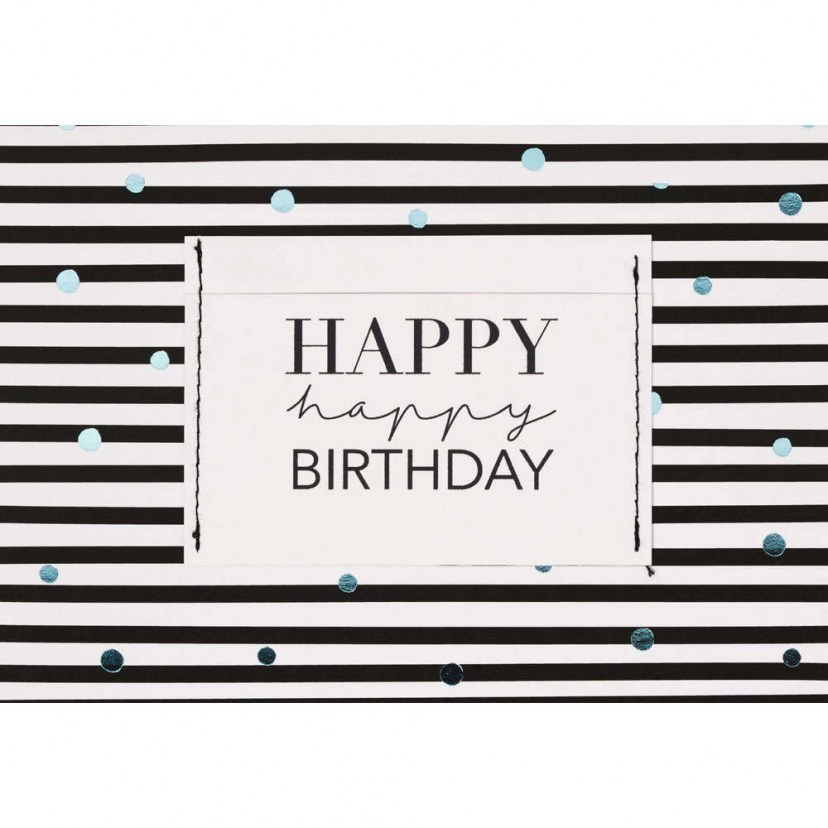Η Ευχετήρια Κάρτα Happy Birthday Gift Card LBTRD0062901 είναι ιδανική για εσάς που αναζητάτε μία καλαίσθητη κάρτα για να ευχηθείτε σε κάποιο αγαπημένο φιλικό ή οικογενειακό πρόσωπο την ημέρα των γενεθλίων του. Κατασκευάζεται από χαρτί ακουαρέλας και διαθέτει ριγέ και πουά σχέδια. Φέρει έναν μεγάλο φάκελο και έναν μικρότερο που βρίσκεται στο μπροστινό σημείο.