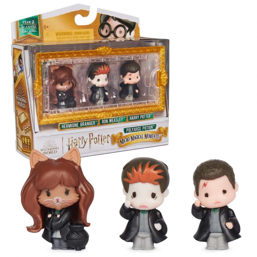 Το Σετ Φιγούρες Harry Potter (Σετ 3Τμχ) 6068608 Hermione Granger Ron Wisley Mini περιλαμβάνει φιγούρες των 4 εκατοστών του Χάρι Πότερ, της Ερμιόνης Γκρέιντζερ και του Ρον Ουέσλι, μαζί με μια καθαρή βιτρίνα και τρεις βάσεις. Το φόντο της βιτρίνας απεικονίζει το μπάνιο όπου το τρίο μεταμορφώθηκε χάρη στο φίλτρο Polyjuice από το Chamber of Secrets. Μπορείτε να ξαναζήσετε αυτήν την εμβληματική στιγμή από τον κόσμο του Χάρι Πότερ. Κάθε φιγούρα παρουσιάζει λεπτομερείς μεταμορφώσεις: ο Χάρι και ο Ρον μεταμορφώθηκαν σε Βίνσεντ Κραμπ και Γκρέγκορι Γκόιλ αντίστοιχα, ενώ η Ερμιόνη μεταμορφώθηκε σε γάτα. Μπορείτε να εμφανίσετε αυτούς τους χαρακτήρες στα περίπτερά τους, στη θήκη ή να τους σηκώσετε μόνοι σας. Επιπλέον, η καθαρή θήκη του σετ στοιβάζεται και συνδέεται με άλλα σετ και φιγούρες Micro Magical Moments για να δημιουργήσετε τις δικές σας σκηνές από το Wizarding World.