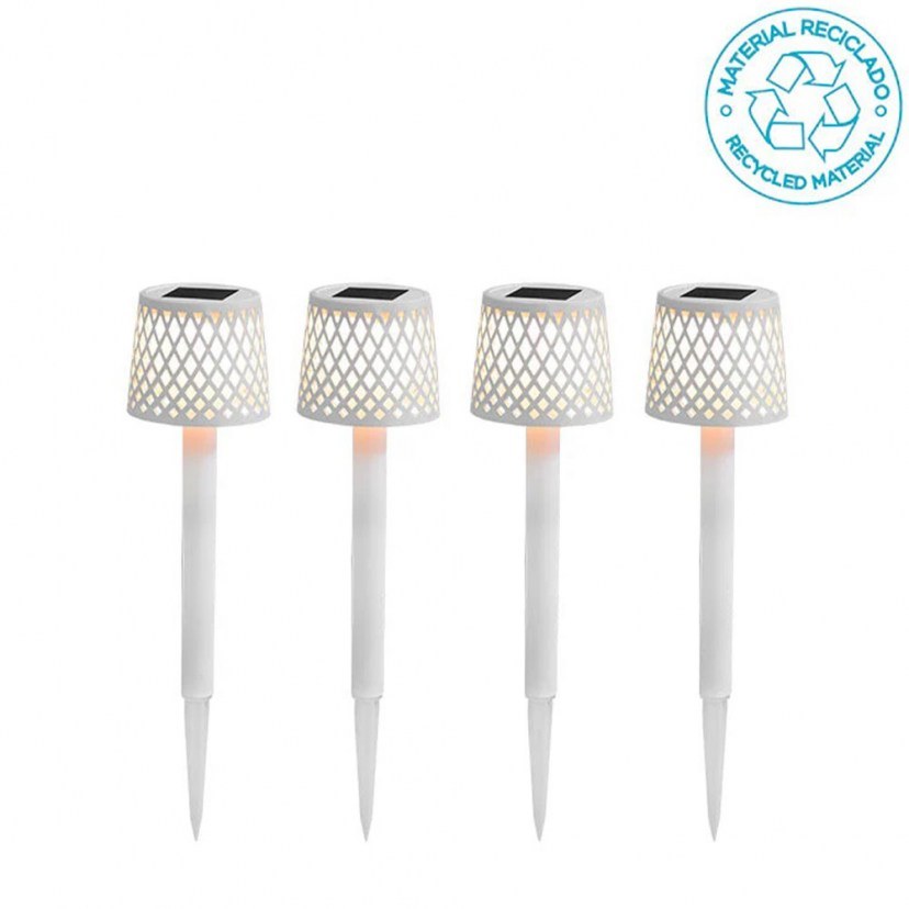 Το Σετ Ηλιακό Φωτιστικό Δαπέδου Gretita (4Τμχ) περιλαμβάνει τέσσερα φωτιστικά, τα οποία είναι τέλεια κατά μήκος του δρόμου ή σε κάποιο μονοπάτι εισόδου όπου χρειάζεστε ατμοσφαιρικό φωτισμό. Το πανέμορφο και εργονομικό σετ φορτίζεται από το ηλιακό φως κατά τη διάρκεια της ημέρας. Εύκολη εγκατάσταση με την παρεχόμενη ακίδα. Διαθέτει ενσωματωμένο LED φωτισμό με θερμό λευκό φως (3000Κ) και απόδοση φωτεινότητας 2 lumens το καθένα.