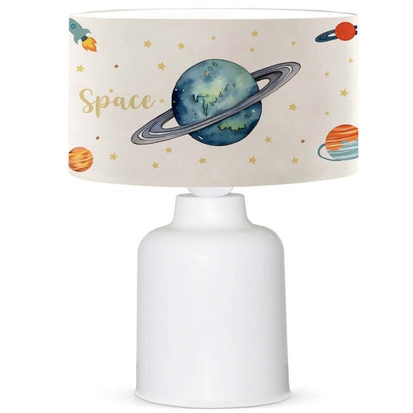 Το Παιδικό Επιτραπέζιο Φωτιστικό 780SGN4684 διαθέτει υφασμάτινο αμπαζούρ με παιχνιδιάρικα σχέδια εμπνευσμένα από τον μαγευτικό του διαστήματος. Φέρει πλαστική βάση, γι αυτό είναι ανθεκτικό, ελαφρύ και κομψό, καθιστώντας το ιδανικό για καθημερινή χρήση. Το σχέδιο του προσφέρει έναν τέλειο συνδυασμό αισθητικής και πρακτικότητας, προσφέροντας το σωστό φωτισμό και στυλ στον χώρο. Απαιτεί έναν λαμπτήρα Ε27 ΜΑΧ 40W, ο οποίος δεν περιλαμβάνεται στη συσκευασία.