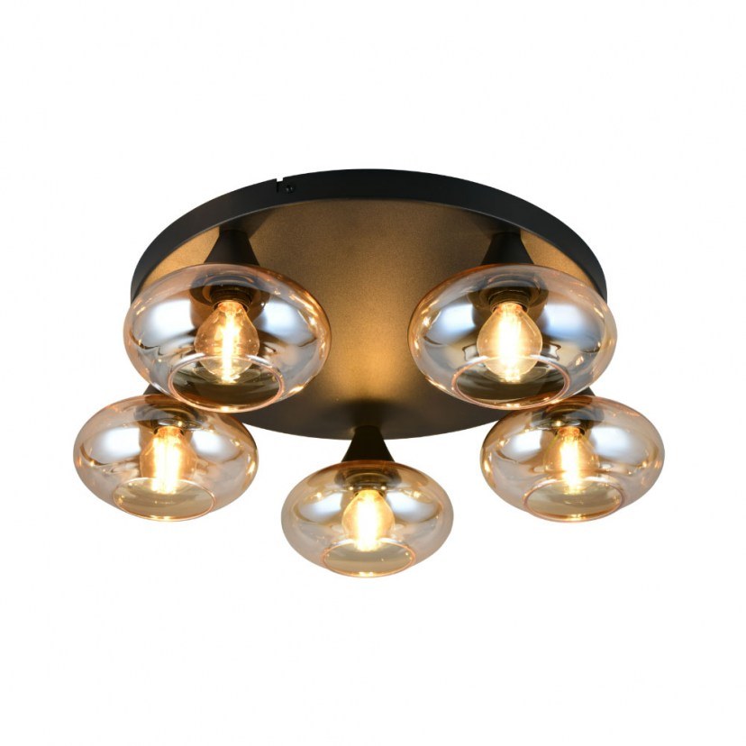 Κάντε δικό σας το Φωτιστικό Οροφής - Πλαφονιέρα Divina και να είστε σίγουροι πως θα σας αφήσει απόλυτα ικανοποιημένους με την υψηλή απόδοση και τη διακριτική κλασική αισθητική του. Διαθέτει πέντε καμπυλωτά γυάλινα καπέλα, που χαρίζουν ζεστό, απαλό φωτισμό και δημιουργούν φιλόξενο και κομψό περιβάλλον σε καθιστικά και τραπεζαρίες. Προσφέρει στιβαρότητα και κομψότητα, ενώ η σύνθεση γυαλιού–μετάλλου χαρίζει διαχρονική αισθητική. Απαιτούνται πέετε λαμπτήρες E14 max 10W, οι οποίοι δεν περιλαμβάνονται.