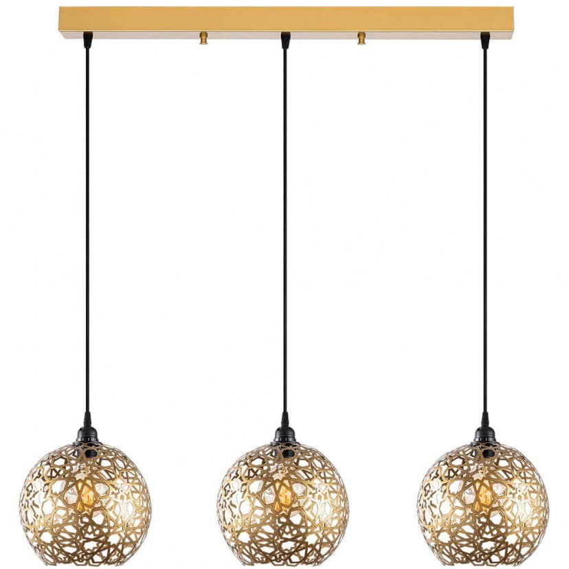 Το Φωτιστικό Οροφής - Ράγα Selcuklu είναι μοντέρνο και εντυπωσιακό, ιδανικό για να προσδώσει χαρακτήρα και στυλ στον χώρο σας. Διαθέτει τρία αμπαζούρ κατασκευασμένα από μέταλλο, τα οποία μαγνητίζουν τα βλέμματα με το περίτεχνο διάτρητο σχέδιο και το λαμπερό φινίρισμα. Η μοναδική του σχεδίαση δημιουργεί όμορφα παιχνίδια φωτός και σκιάς, αναδεικνύοντας τον χώρο με έναν κομψό και εντυπωσιακό τρόπο. Ιδανικό για σαλόνια, τραπεζαρίες ή οποιοδήποτε δωμάτιο που χρειάζεται μια μοντέρνα και εντυπωσιακή πινελιά. Απαιτεί τρεις λαμπτήρες Ε27 ΜΑΧ 42W, οι οποίοι δεν περιλαμβάνονται στη συσκευασία.