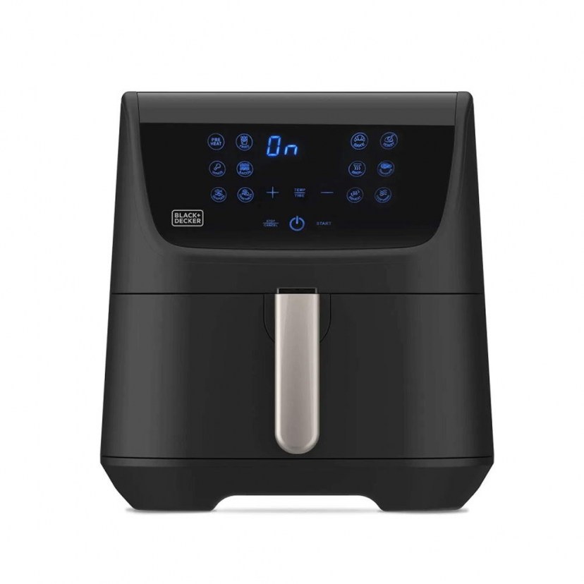 Η Φριτέζα Αέρος ES9730050B είναι ιδανική για ψήσιμο, τηγάνισμα και γενικά για να φτιάξετε τις αγαπημένες γαστρονομικές δημιουργίες με τον πιο υγιεινό τρόπο. Πρόκειται για μία ευρύχωρη φριτέζα με χωρητικότητα 5,3 lt, που σας επιτρέπει να μαγειρέψετε χωρίς να χρησιμοποιείτε πολύ λαδί. Είναι μία φριτέζα προηγμένης τεχνολογίας με touch screen, που σας επιτρέπει να την ενεργοποιήσετε, να ρυθμίστε τη θερμοκρασία ή επιλέξτε κάποιο προκαθορισμένο πρόγραμμα ψηφιακά, ώστε να μαγειρέψετε στο άψε σβήσε με εγγυημένα αποτελέσματα. Διαθέτει επτά αυτόματα προγράμματα μαγειρέματος αγγίζοντας το πλήκτρο αφής με το αντίστοιχο τρόφιμο και είστε έτοιμοι. Μπορείτε να ελέγξετε τη θερμοκρασία από 80°C έως και 200°C και διαθέτει χρονοδιακόπτη έως και 60 λεπτά. Φέρει πρακτικό δοχείο με αντικολλητική επίστρωση και έχει χωρητικότητα 5,3L και το εξωτερικό σκεύος 6,3L. Διαθέτει αυτόματη απενεργοποίηση για να είστε ήσυχοι και να αφήνετε τη συσκευή να μαγειρεύει κάνοντάς παράλληλα της δουλειές σας.