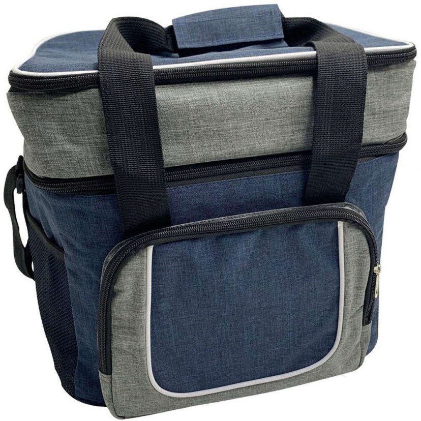 Θέλετε να μεταφέρετε τρόφιμα για κάποιο πικ νικ ή κάποια άλλη εξόρμηση, αλλά δε θέλετε να επηρεαστούν από τη θερμοκρασία της ατμόσφαιρας; Τότε κάντε δική σας την Ισοθερμική Τσάντα 2 Θέσεων. Χαρακτηρίζεται από κομψό design και προσφέρει μεγάλη χωρητικότητα. Κατασκευάζεται από ύφασμα 300D/6mm με εσωτερική επένδυση αλουμινίου, που βοηθά στο να διατηρεί το περιεχόμενο την ιδανική θερμοκρασία. Διαθέτει δύο μεγάλους χώρους αποθήκευσης και μία πλαϊνή τσέπη. Μπορείτε να τη μεταφέρετε είτε από τις δύο λαβές, είτε από τον ιμάντα ώμου. Χωρητικότητα: 22 λίτρα.