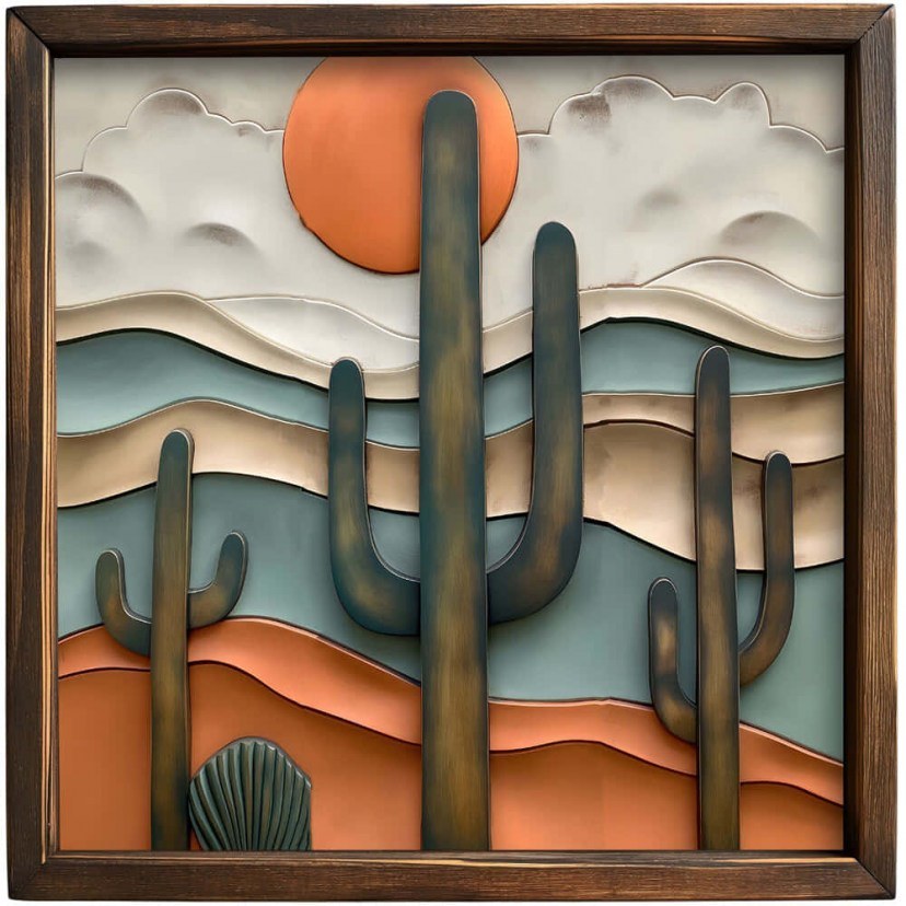 Το Κάδρο 856EVL1404 είναι ένα εντυπωσιακό έργο τέχνης που συνδυάζει την αίσθηση του western με τη φυσική ομορφιά των κάκτων. Με λεπτομερείς αποδόσεις και μοναδικές επιρροές από την άγρια δύση, αυτό το κάδρο φέρνει στον χώρο σας την ένταση και την ατμόσφαιρα του παλιού δυτικού κόσμου, διακοσμώντας με στυλ και χαρακτήρα. Η υψηλής ποιότητας κατασκευή από MDF και ξύλο πεύκου εξασφαλίζει μακροχρόνια ανθεκτικότητα και στιβαρότητα. Με ζωντανά χρώματα που αναδεικνύουν τη φυσική ομορφιά του σχεδίου, αυτό το κάδρο θα αναβαθμίσει αμέσως το στυλ του σπιτιού σας, προσφέροντας μια αίσθηση φρεσκάδας και μοναδικότητας.