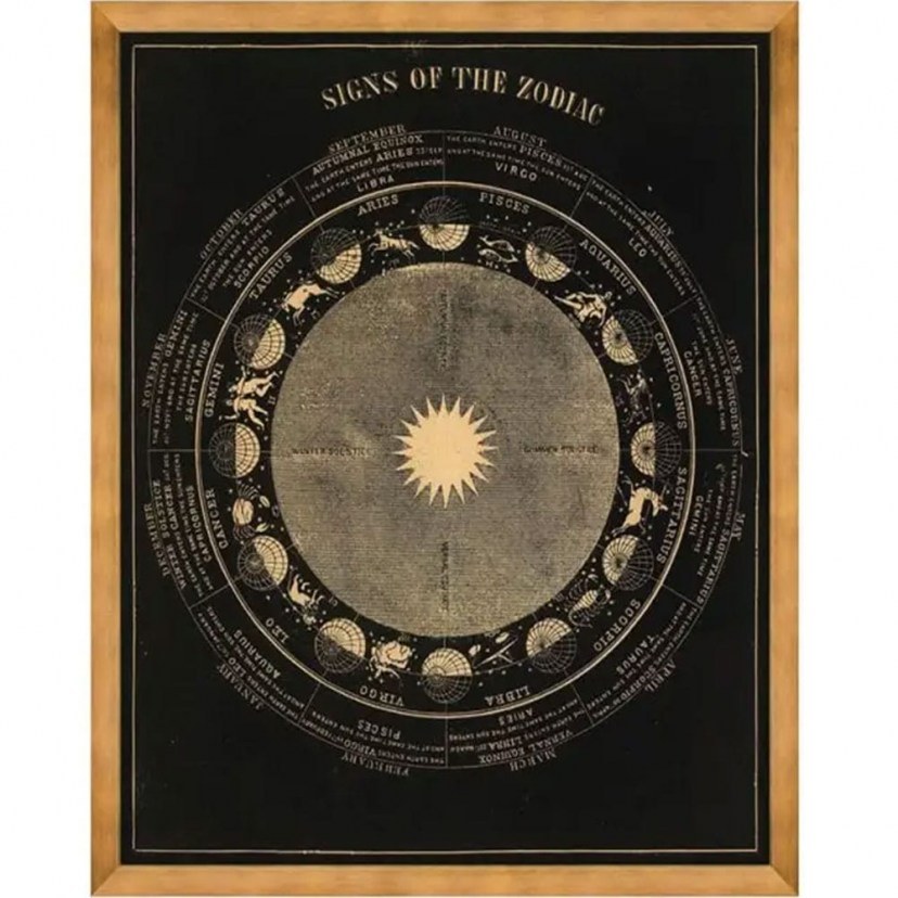 Ένα εκπληκτικό vintage γράφημα που δείχνει την αστρονομία των ζωδιακών μύθων, σχεδιασμένη για χρήση από δημόσια σχολεία στις Ηνωμένες Πολιτείες. Το Κάδρο Signs Of The Zodiac FA13125 απεικονίζει πολλά πρωτότυπα διαγράμματα με μία επιστημονική προσέγγιση. Μπορεί να παρουσιάζεται απόκλιση 3-5cm στις αναφερόμενες διαστάσεις, λόγω της μοναδικότητας του προϊόντος.
