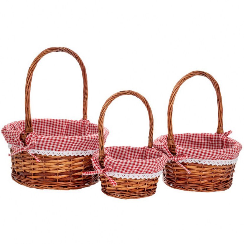 1 Σετ Καλάθια: 1 Καλάθι: Διάμετρος: 30 cm, Ύψος: 14/35 cm & 1 Καλάθι: Διάμετρος: 25 cm, Ύψος: 12/30 cm & 1 Καλάθι: Διάμετρος: 20 cm, Ύψος: 10/25 cm