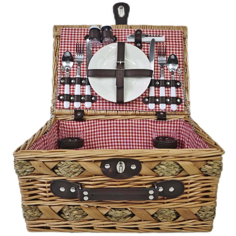 Το Καλάθι Πικ Νικ 2 ατόμων 839735 είναι η τέλεια συντροφιά για ρομαντικές ή χαλαρές εξορμήσεις στη φύση. Κατασκευασμένο από ψάθα με εσωτερική επένδυση σε κλασικό καρό ύφασμα, συνδυάζει παραδοσιακό στυλ και λειτουργικότητα. Περιλαμβάνει όλα όσα χρειάζεστε για ένα ολοκληρωμένο γεύμα, όπως πορσελάνινα πιάτα, ποτήρια κρασιού, μαχαιροπίρουνα, ανοιχτήρι και αλατοπίπερο, προσφέροντας μια κομψή και πρακτική λύση για κάθε πικνίκ.