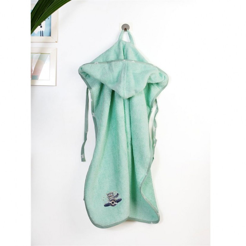 Τυλίξτε το μωρό σας με απαλότητα και φροντίδα μετά το μπάνιο με τη Βρεφική Κάπα Με Κέντημα Aviator, που ξεχωρίζει για το χαριτωμένο κέντημα αεροπόρου και το χρωματιστό ρέλι με μοτίβο αστεράκια που χαρίζει παιχνιδιάρικη διάθεση. Κατασκευασμένη από 100% βαμβακερή, υποαλλεργική πετσέτα υψηλής απορροφητικότητας (400 gr/m²), προσφέρει απαλή αίσθηση και αποτελεσματικό στέγνωμα, ενώ η ενσωματωμένη κουκούλα κρατά το κεφαλάκι του μωρού σας ζεστό. Πιστοποιημένη με OEKO-TEX® Standard 100, αποτελεί ασφαλή και ποιοτική επιλογή για την καθημερινή φροντίδα του μωρού σας.