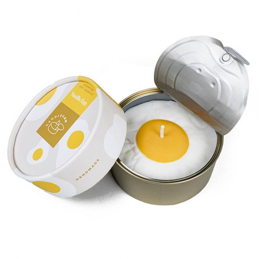 Το Αρωματικό Κερί Vanilla Egg συσκευάζεται όπως ένα πραγματικό κονσερβοποιημένο φαγητό, εξασφαλίζοντας του μια νέα απροσδόκητη μορφή! Πρόκειται για ένα ιδιαίτερο κερί, το οποίο μοιάζει με κονσερβοποιημένο τηγανητό αυγό και θα χαρίσει στο χώρο σας ένα υπέροχο άρωμα βανίλιας. Ειδικά σχεδιασμένο για να σας προσφέρει αργό και ομαλό χρόνο καύσης πάνω από 30 ώρες. Ένα πολυτελές κερί, που δημιουργήθηκε με μοναδικό σκοπό να εμπνεύσει και να διακοσμήσει τον πάγκο της κουζίνας ή το χώρο του καθιστικού σας. Επιλέξτε αρωματικά κεριά που είναι φιλικά για το περιβάλλον και το σπίτι σας. Το συγκεκριμένο κερί είναι φτιαγμένο από κερί λαχανικών και διαθέτει φιτίλια βαμβακιού. Τα όμορφα κεριά αξίζουν και όμορφη συσκευασία, γι 'αυτό, σε αντίθεση με τα περισσότερα δώρα σπιτιού που χρειάζονται συσκευασία δώρου, το δροσερό κερί μας έρχεται σε ένα πραγματικά μοναδικό δοχείο με επαναχρησιμοποιήσιμο καπάκι. Η δροσερή και πρακτική συσκευασία είναι αυτό που το καθιστά έτοιμο για δώρο σε κάποιο αγαπημένο σας πρόσωπο! Κάθε κερί είναι χειροποίητο από εξειδικευμένους κατασκευαστές κεριών στη Λιθουανία. Προειδοποίηση ασφαλείας: Μην αφήνετε το κερί αναμμένο χωρίς επίβλεψη. Κρατήστε το μακριά από εύφλεκτα αντικείμενα και από το μακριά από παιδιά. Είναι σχεδιασμένο από τον Justinas Bruzas, ο οποίος είναι σχεδιαστής τόσο των Candlecan όσο και των Candlehand, με πάνω από 10 χρόνια εμπειρίας στον σχεδιασμό κεριών!