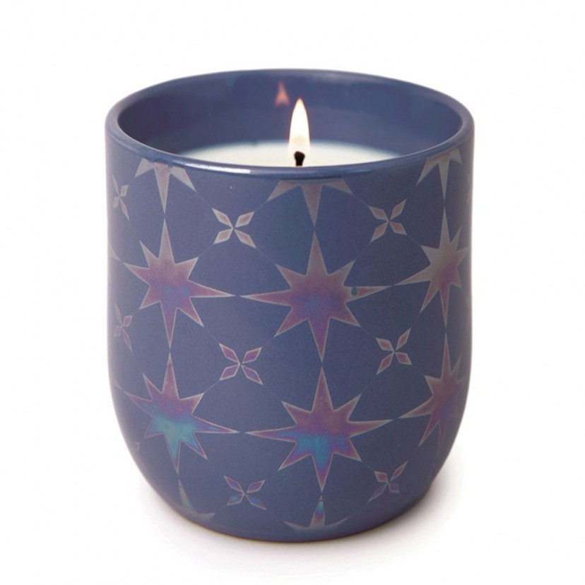 Το Αρωματικό Κερί Σόγιας Lustre Stars Sapphire Waters είναι εμπνευσμένο από τα γαλάζια νερά του ζαφειρένιου ωκεανού. Η οσφρητική αίσθηση ξεκινά με τις δροσερές νότες της αλμυρής θάλασσας και του κρυστάλλου νερού. Το κερί είναι φτιαγμένο από φυτικό κερί σόγιας, που είναι πιο φιλικό προς το περιβάλλον από τα κεριά παραφίνης. Διατίθεται σε κεραμικό δοχείο με ιδιαίτερο σχέδιο, το οποίο αναδεικνύεται με τον πιο όμορφο τρόπο χάρη στο ιριδίζον φινίρισμα. Το δοχείο μόλις τελειώσει το κερί μπορεί να χρησιμοποιηθεί ως κούπα ή διακοσμητικό, καθώς είναι πανέμορφο και ασφαλές στην επαφή με τρόφιμα.