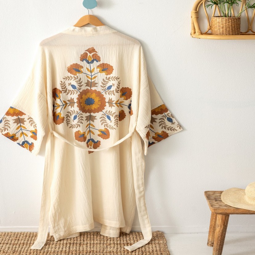 Αναδείξτε το καλοκαιρινό σας στυλ με το Κιμονό Komo/2 που συνδυάζει την απόλυτη άνεση με την αέρινη φινέτσα. Θα λατρέψετε τη φυσική αίσθηση που προσφέρει το ύφασμα από 100% βαμβάκι, το οποίο επιτρέπει στο δέρμα να αναπνέει, καθιστώντας το ιδανικό για τις ζεστές ημέρες στην παραλία ή τις απογευματινές σας βόλτες. Σε πρακτικό μέγεθος One Size για να ταιριάζει άψογα σε κάθε σωματότυπο και διακοσμημένο με μια εντυπωσιακή στάμπα που τραβάει τα βλέμματα, αυτό το κιμονό αποτελεί το απόλυτο key-piece για την γκαρνταρόμπα σας.