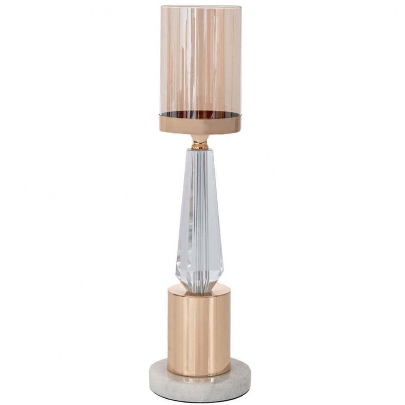 Το Κηροπήγιο 91776 αποτελεί μια εξαιρετική σύνθεση υλικών που αποπνέει πολυτέλεια και σύγχρονο σχεδιασμό, ιδανικό για να κοσμήσει τις πιο ιδιαίτερες γωνιές του σπιτιού σας. Η βάση από μάρμαρο προσφέρει μια σταθερή και αριστοκρατική υποστήριξη, η οποία δένει αρμονικά με τον ακρυλικό κορμό που χαρίζει μια αίσθηση διαφάνειας και μοντέρνας αισθητικής. Το γυάλινο στοιχείο στο επάνω μέρος αγκαλιάζει το φως, ενώ οι μεταλλικές πινελιές ολοκληρώνουν το σύνολο με μια λάμψη που αναδεικνύει την υψηλή ποιότητα κατασκευής. Αυτό το κομμάτι είναι η τέλεια επιλογή για όσους επιθυμούν ένα διακοσμητικό αντικείμενο που ισορροπεί με ακρίβεια ανάμεσα στην κλασική αίγλη και την πρωτοποριακή κομψότητα.