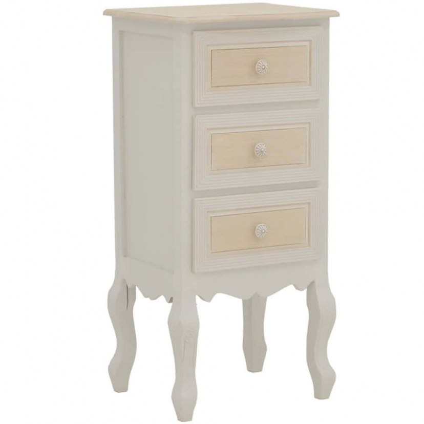 Δώστε έναν vintage και ρομαντικό αέρα στην κρεβατοκάμαρά σας με το Κομοδίνο Joliene 087-000018, ένα κομψό και πρακτικό έπιπλο. Ο σκελετός του είναι κατασκευασμένος από MDF υψηλής ποιότητας, εξασφαλίζοντας ανθεκτικότητα και σταθερότητα. Με τα τρία του συρτάρια, προσφέρει άφθονο χώρο για την οργανωμένη αποθήκευση των προσωπικών σας αντικειμένων, διατηρώντας τον χώρο τακτοποιημένο και λειτουργικό. Το κομοδίνο καθαρίζεται εύκολα με ένα στεγνό πανί για τη σκόνη, ενώ για λεκέδες αρκεί ένα μαλακό πανί με χλιαρό νερό και ήπιο σαπούνι, διατηρώντας την ομορφιά του αναλλοίωτη στον χρόνο. Το προϊόν παραδίδεται αμοντάριστο.