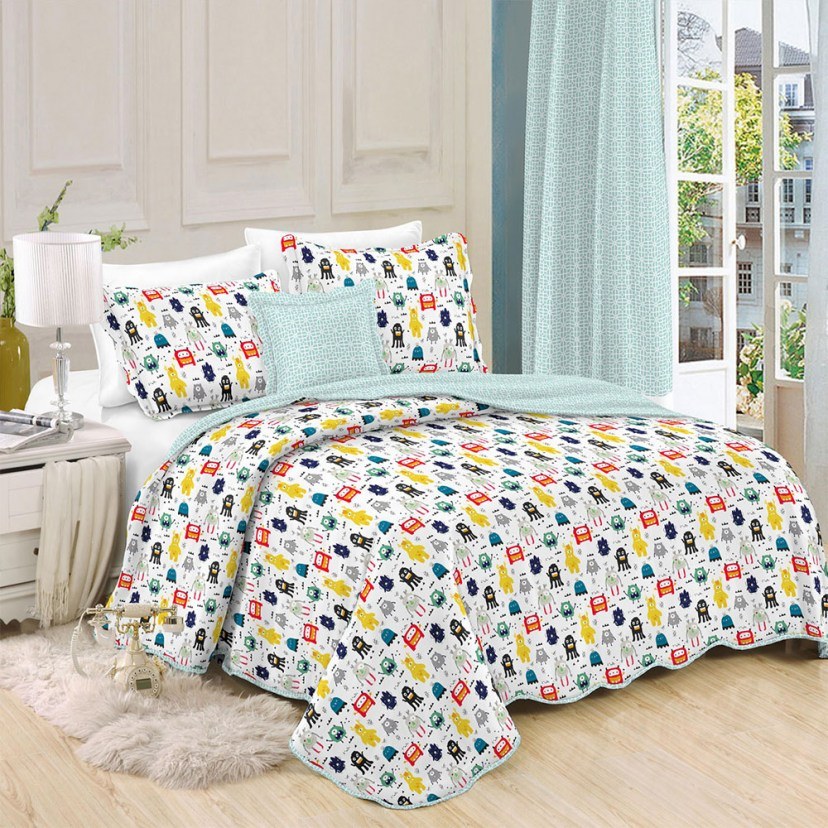 Το Σετ Παιδικό Κουβερλί 5407 διαθέτει τυπωτό σχέδιο, το οποίο αναπαριστά χαριτωμένα τερατάκια σε χαρούμενες αποχρώσεις, δημιουργώντας ένα εκπληκτικό αισθητικό αποτέλεσμα. Πρόκειται για ένα κουβερλί και μία μαξιλαροθήκη, που είναι κατασκευασμένα από άριστης ποιότητας ύφασμα microfiber, το οποίο διακρίνεται για την υπέροχη υφή του. Το κουβερλί διαθέτει λεπτή πολυεστερική γέμιση, ώστε να εξασφαλίσει στο παιδάκι σας την τέλεια θερμοκρασία για γαλήνιο και ποιοτικό ύπνο.