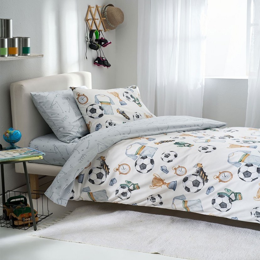 Το Παιδικό Κουβερλί Football είναι αγαπημένη επιλογή όλων των ποδοσφαιρόφιλων, καθώς διαθέτει παιχνιδιάρικο σχέδιο με μπάλες ποδοσφαίρου, κύπελα κ.α. Πρόκειται για το τέλειο σκέπασμα για την άνοιξη, το καλοκαίρι και το φθινόπωρο, καθώς διαθέτει λεπτή πολυεστερική γέμιση. Είναι κατασκευασμένο από βαμβακερό ύφασμα υψηλής ποιότητας, που το καθιστά απαλό και ευχάριστο στην υφή.