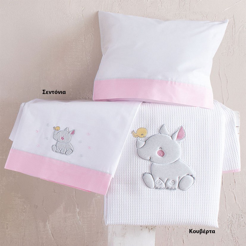 Κουβέρτα Βρεφική Rino Με Κέντημα Πικέ Pink Ρυθμός