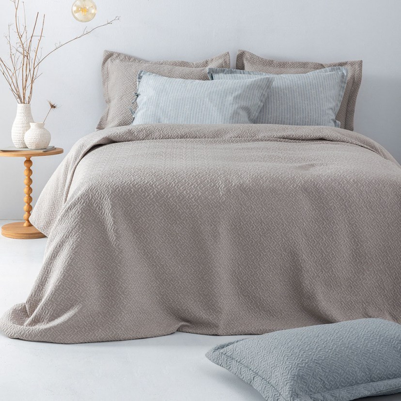 Αναβαθμίστε την αισθητική του υπνοδωματίου σας με την Κουβέρτα Zoe, κατασκευασμένη από υψηλής ποιότητας ύφασμα cotton-polyester βάρους 300gr/m². Ιδανική για τους ανοιξιάτικους και φθινοπωρινούς μήνες, προσφέρει κομψότητα, άνεση και διακριτική πολυτέλεια στο κρεβάτι σας. Το ανάγλυφο matelassé σχέδιο της αποπνέει διαχρονική φινέτσα, ενώ διατίθεται σε τρεις εκλεπτυσμένες αποχρώσεις που προσαρμόζονται εύκολα σε κάθε στυλ διακόσμησης. Πλένεται στους 30°C και σιδερώνεται σε μέτρια θερμοκρασία. Απαγορεύεται το στεγνωτήριο, το στεγνό καθάρισμα και η χρήση ισχυρού λευκαντικού ή χλωρίου.