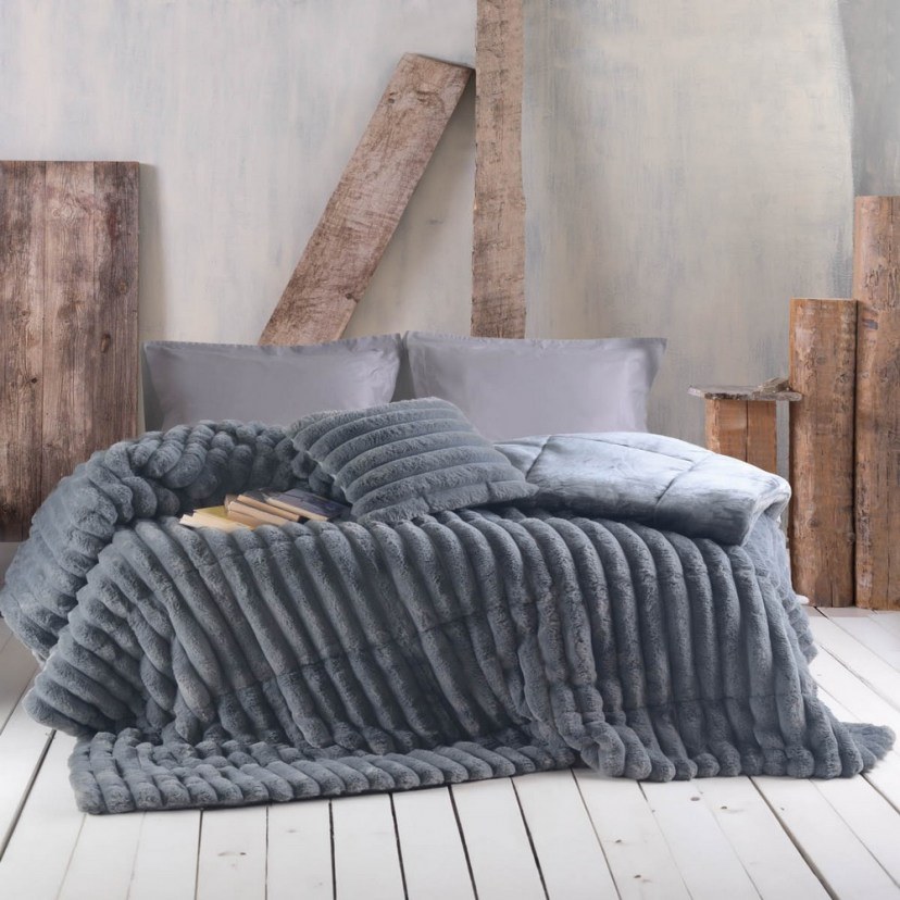 Κουβερτοπάπλωμα Γούνινο Trinity Διπλής Όψης Dark Grey Ρυθμός