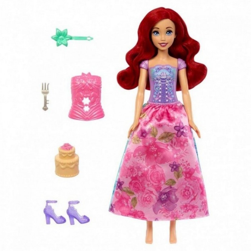 Η Κούκλα Disney Princess: Spin Reveal - Ariel Doll (HTV88) προσφέρει μια μαγευτική εμπειρία unboxing που θα ενθουσιάσει τα παιδιά! Εμπνευσμένη από την αγαπημένη ηρωίδα της ταινίας Η Μικρή Γοργόνα, η κούκλα Άριελ αποκαλύπτει πολλές εκπλήξεις με κάθε περιστροφή της συσκευασίας. Η διαδικασία ξεκινά όταν τα παιδιά ανοίγουν το λουλούδι και ανακαλύπτουν ένα σκηνικό κήπου με μυστικές φιγούρες, που εμπνέονται από την Άριελ. Στη συνέχεια, περιστρέφοντας τη συσκευασία, αποκαλύπτονται 5 μυστικά σακουλάκια, το καθένα με αξεσουάρ μόδας και αυτοκόλλητα για να εμπλουτίσουν το παιχνίδι και τη φαντασία. Η τελευταία έκπληξη είναι η κούκλα Άριελ, που φοράει ένα πανέμορφο λουλουδάτο σύνολο με διπλής όψης φούστα και τοπ που κουμπώνει πάνω στην κούκλα. Η Άριελ έχει μακριά μαλλιά και συνοδεύεται από αξεσουάρ όπως παπούτσια για να ολοκληρώσει την εμφάνισή της. Τα παιδιά μπορούν να διακοσμήσουν το σκηνικό με τα αυτοκόλλητα που περιλαμβάνονται και να χρησιμοποιήσουν αυτό το μαγικό περιβάλλον για να δημιουργήσουν τις δικές τους ιστορίες και περιπέτειες με την Άριελ και τα υπόλοιπα αξεσουάρ της!