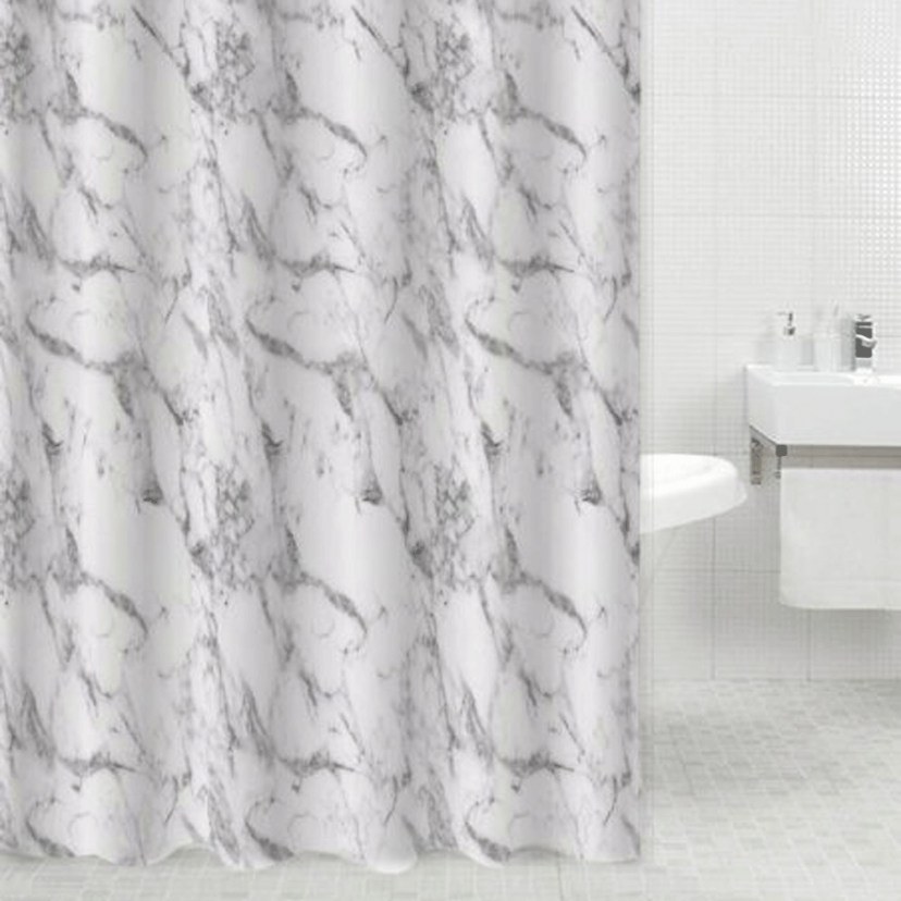 H Κουρτίνα Μπάνιου Με 12 Κρίκους Μάρμαρο 831067 είναι μία οικονομική και πανέμορφη κουρτίνα που θα σας βοηθήσει να διατηρήσετε ασφαλές και στεγνό το μπάνιο σας. Διαθέτει εντυπωσιακό design με εφέ μαρμάρου. Η σύνθεσή της από πολυεστέρα την καθιστά εξαιρετικά ανθεκτική, εύκολη στο καθάρισμα και ευχάριστη στην υφή. Στη συσκευασία συμπεριλαμβάνονται δώδεκα πλαστικοί κρίκοι για να την τοποθετήσετε.