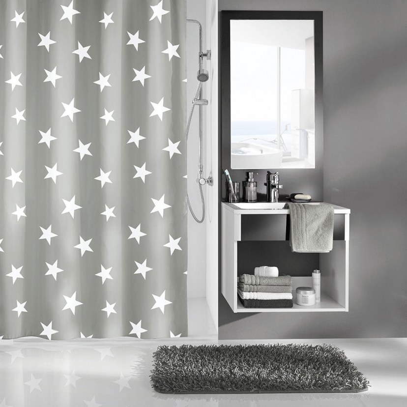 H Κουρτίνα Μπάνιου Nova 5274 θα αποτελέσει μία παιχνιδιάρικη διακοσμητική πινελιά για το μπάνιο σας! Πρόκειται για μία πανέμορφη κουρτίνα, η οποία διατίθεται σε δύο μοντέρνους χρωματικούς συνδυασμούς και φέρει χαριτωμένα αστεράκια. Είναι κατασκευασμένη από ειδικά επεξεργασμένο πολυεστερικό ύφασμα, που την καθιστά ανθεκτική και αδιάβροχη. Πλένεται στους 40º C και μπορεί να σιδερωθεί σε χαμηλή θερμοκρασία. Οι κρίκοι δεν περιλαμβάνονται.