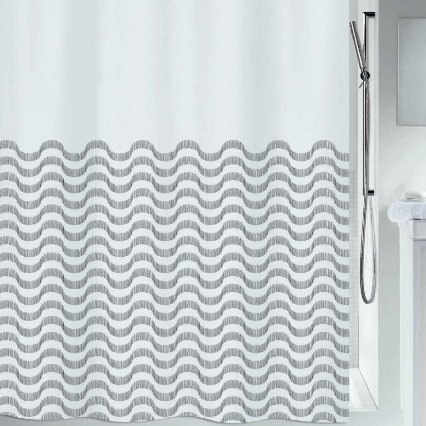 Η κουρτίνα μπάνιου της σειράς Vagues θα ανανεώσει το μπάνιο σας και θα το κρατήσει στεγνό και στυλάτο! Δώστε νέο αέρα στο σπίτι σας, επιλέγοντας κουρτίνα με ωραία σχήματα και ουδέτερα χρώματα που θα ταιριάξει σε κάθε τύπο μπάνιου! Συμπεριλαμβάνονται οι κρίκοι.