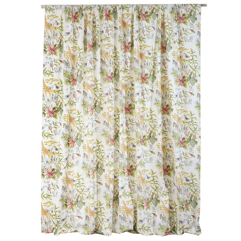 Για εσάς που βαριέστε τις κλασικές και τετριμμένες επιλογές και θέλετε κάτι ιδιαίτερο και πρωτότυπο για τον χώρο σας, το designdrops προτείνει την Κουρτίνα Safari. Διαθέτει μοντέρνο σχέδιο με τροπικά φυτά και άγρια ζώα, που δημιουργούν ένα άκρως δυναμικό αισθητικό αποτέλεσμα. Πρόκειται για μία κουρτίνα μέτριας σκίασης, η οποία είναι κατασκευασμένη από βαμβακερό πάναμα ύφασμα. Το υπέροχο σχέδιο είναι τυπωμένο με προηγμένα μέσα ψηφιακής εκτύπωσης, γεγονός που το καθιστά προσεγμένο και ανθεκτικό. Διαθέτει τρέσα για να την κρεμάσετε.