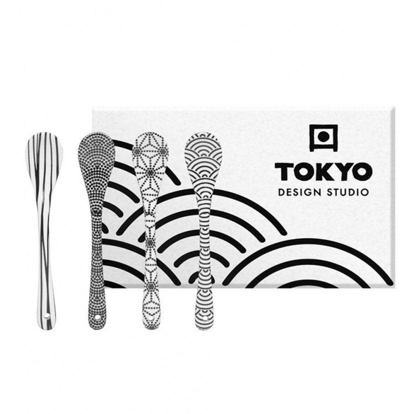 Το Σετ Κουταλάκια Nippon 17992 είναι ιδανικό για εσάς που θέλετε να είναι προσεγμένη και η παραμικρή λεπτομέρεια όταν σερβίρετε τσάι, καφέ και γλυκά στους καλεσμένους σας! Πρόκειται για ένα πανέμορφο σετ, το οποίο περιλαμβάνει τέσσερα κουταλάκια με ιδιαίτερα γεωμετρικά σχέδια και υπέροχο ασπρόμαυρο χρωματικό συνδυασμό! Είναι χειροποίητα, κατασκευασμένα από φίνα πορσελάνη. Κατάλληλα για τον φούρνο μικροκυμάτων και για το πλυντήριο πιάτων.