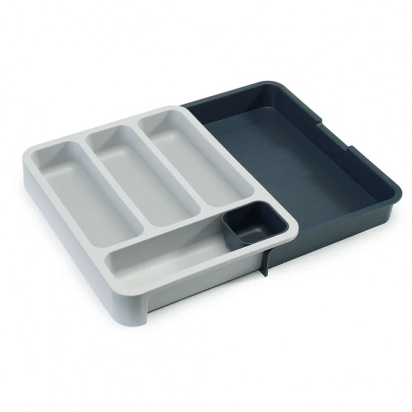 Η Επεκτεινόμενη Κουταλοθήκη Drawerstore 85042 αποτελεί μια έξυπνη και πρακτική λύση για την οργάνωση των συρταριών της κουζίνας σας. Ο ευέλικτος σχεδιασμός της, με δύο μέρη που ρυθμίζονται με ακρίβεια, επιτρέπει την προσαρμογή σε συρτάρια πλάτους από 29 έως 48 cm, κλειδώνοντας με ασφάλεια στη θέση τους. Η επεκτεινόμενη επιφάνεια φιλοξενεί μεγαλύτερα σκεύη και μαχαιροπίρουνα, ενώ το αποσπώμενο δοχείο αποθήκευσης είναι ιδανικό για μικρά αντικείμενα. Μια καλαίσθητη λύση που μεταμορφώνει την καθημερινή χρήση της κουζίνας με άνεση και τάξη.