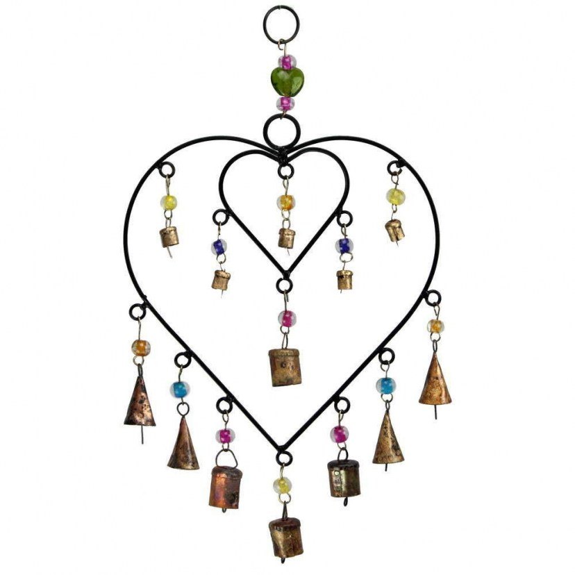 Το Κρεμαστό Διακοσμητικό Τοίχου NAMD222 είναι ένα εύηχο αντικείμενο θα εξασφαλίσει υπέροχους ήχους στον χώρο σας αλλά και ευημερία και καλοτυχία. Φέρει δύο όμορφες καρδούλες με μπρούτζινα καμπανάκια και είναι διακοσμημένος με πολύχρωμες γυάλινες χάντρες. Είναι χειροποίητος στην Ινδία και αποτελεί προϊόν δίκαιου εμπορίου. Δικός σας εύκολα και οικονομικά με ένα απλό κλικ στο designdrops!