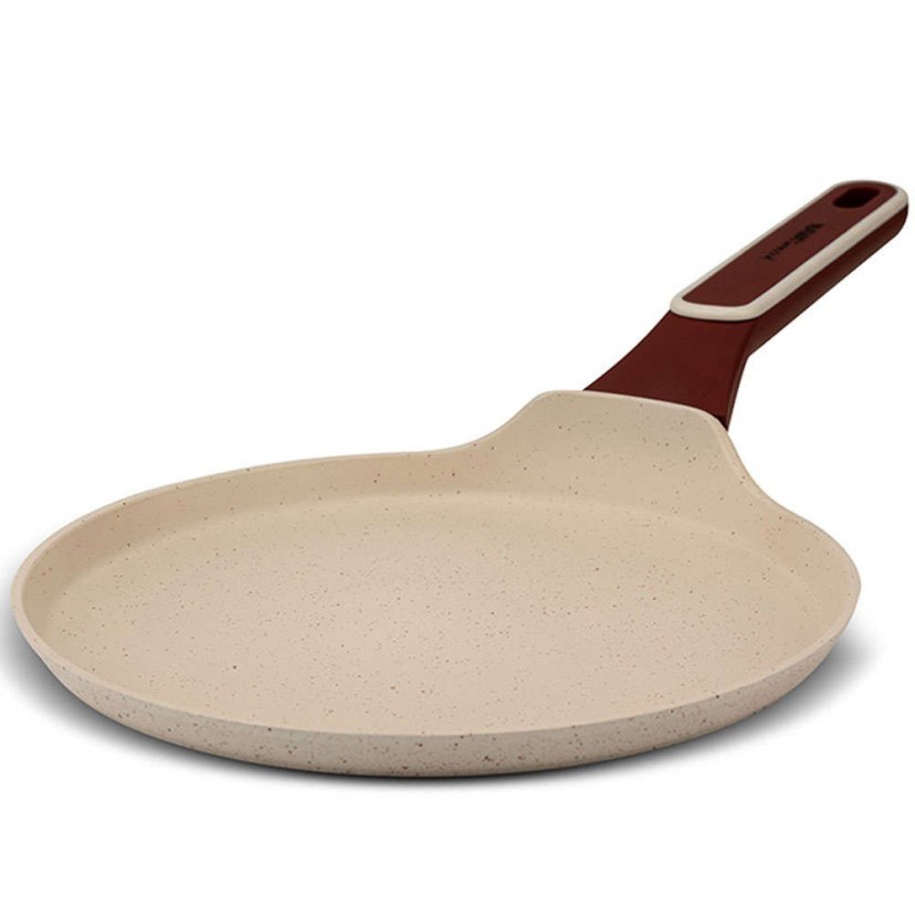 Η Αντικολλητική Κρεπιέρα Terrestrial 10-144-311 θα σας δώσει τη δυνατότητα να φτιάξετε τις πιο γευστικές και καλοψημένες κρέπες. Είναι ένα εξαιρετικό σκεύος για την κουζίνα σας, ενώ μπορείτε να το προσφέρετε και σαν δώσε σε κάποιον που λατρεύει τις κρέπες. Ξεχωρίζει για την εξαιρετική θερμική αγωγιμότητα, κάτι που της δίνει τη δυνατότητα να θερμαίνεται πολύ γρήγορα και να διατηρεί τη θερμοκρασία της για μεγαλύτερο χρονικό διάστημα. Κατασκευάζεται από αλουμίνιο και εφαρμόζει τέλεια στις εστίες, με αποτέλεσμα να διοχετεύεται ομοιόμορφα η θερμότητα σε όλη την επιφάνεια του σκεύους για τέλεια απόδοση, όσο θα εξοικονομείτε ενέργεια. Φέρει υψηλής ποιότητας εσωτερική αντικολλητική επιφάνεια τριών στρώσεων, για μακροχρόνια αντοχή στη χρήση. Εξωτερικά είναι εξαιρετικά ανθεκτική στα γδαρσίματα. Η εργονομική και μη θερμαινόμενη soft touch λαβή χαρίζει άνετο και ασφαλές κράτημα. Κατά την κατασκευή της υπάρχει σημαντική μείωση εκπομπών του διοξειδίου του άνθρακα, ενώ δεν περιέχουν PFOA. Είναι κατάλληλη για εστίες αερίου, ηλεκτρικές, κεραμικές, αλογόνου και επαγωγικές, καθώς και για το πλυντήριο πιάτων. Χρειάζεται πλύσιμο πριν από την πρώτη χρήση. Πριν από κάθε χρήση πρέπει να αλείφετε το σκεύος με λάδι ή βούτυρο. Η μέγιστη θερμοκρασία δε θα πρέπει να ξεπερνάει τους 230°C.