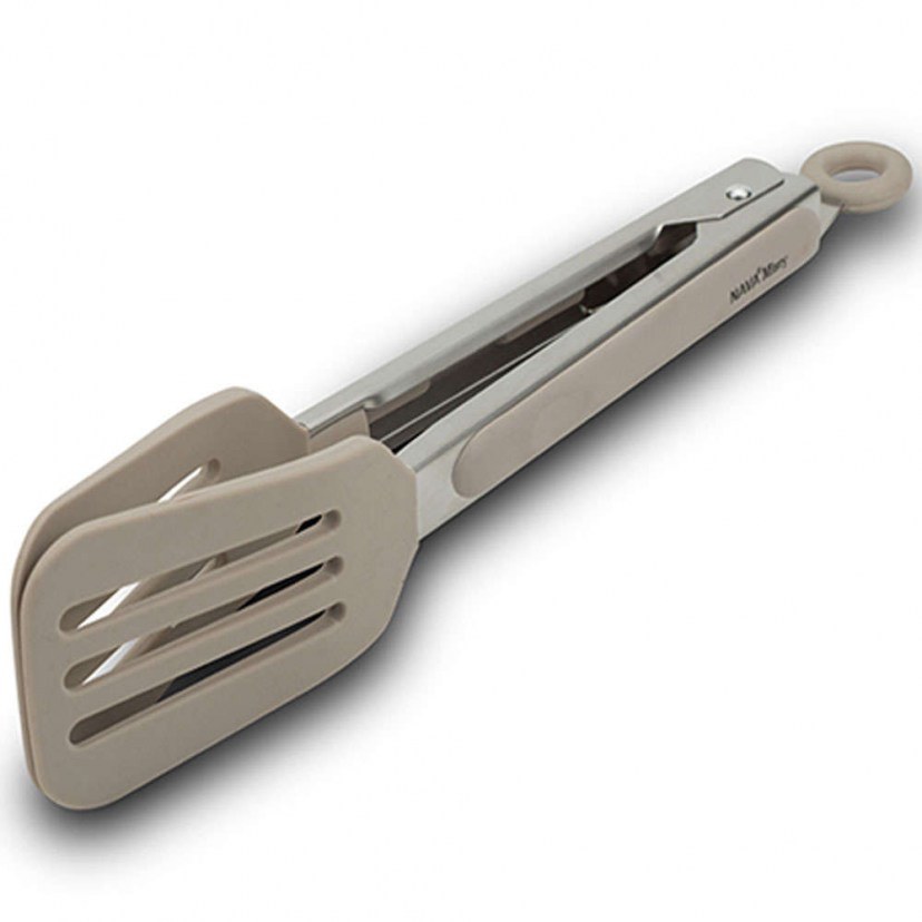 Η Λαβίδα Misty είναι ένα απαραίτητο εργαλείο για την κουζίνα σας, ιδανική για το σερβίρισμα και το ασφαλές γύρισμα του κρέατος στο φούρνο ή το τηγάνι. Διαθέτει κεφαλή από υψηλής ποιότητας σιλικόνη, η οποία είναι κατάλληλη για επαφή με τρόφιμα και ανθεκτική σε θερμοκρασίες έως και 200°C. Η εργονομική και αντιολισθητική λαβή εξασφαλίζει άνετο και ασφαλή χειρισμό, ενώ η ασφάλεια στην άκρη της λαβής κλειδώνει τη λαβίδα σε κλειστή θέση, εξοικονομώντας χώρο όταν δεν τη χρησιμοποιείτε. Επιπλέον, η πρακτική οπή στην άκρη της λαβής σας επιτρέπει να την κρεμάτε για εύκολη αποθήκευση.
