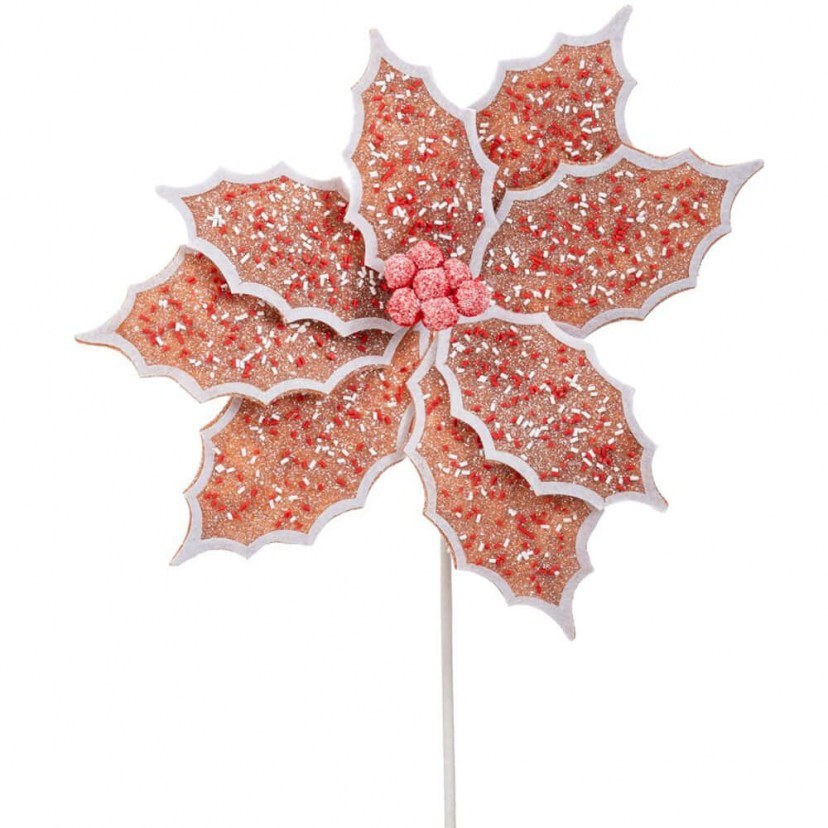 Προσδώστε μια ζεστή και παιχνιδιάρικη πινελιά στη χριστουγεννιάτικη διακόσμησή σας με το Λουλούδι - Κλαδί Gingerbread Αλεξανδρινό 90410. Ο συνδυασμός του αλεξανδρινού με γλυκά gingerbread στοιχεία προσφέρει χρωματική ζωντάνια και δημιουργεί χαρούμενη γιορτινή ατμόσφαιρα.