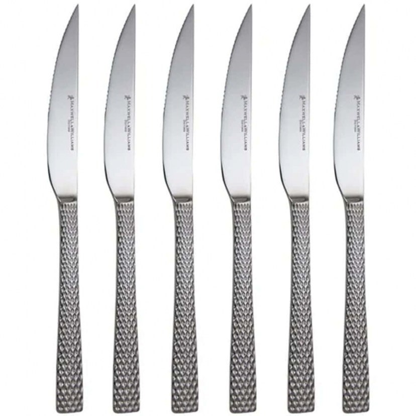 Απογειώστε την εμπειρία του φαγητού με το Σετ Μαχαίρια Κρέατος Diamonds (6Τμχ) MY0140, ιδανικό για το σερβίρισμα μπριζόλας, κρεατικών και ψητών. Κατασκευασμένα από υψηλής ποιότητας ανοξείδωτο ατσάλι, τα έξι μαχαίρια προσφέρουν αντοχή, ακρίβεια και άνεση στο κόψιμο, χάρη στη λεπτοδουλεμένη οδοντωτή λεπίδα. Το γυαλιστερό φινίρισμα του σετ προσδίδει μια κομψή, λαμπερή όψη, ενώ το ανάγλυφο σχέδιο του συνδυάζεται άψογα με τη σειρά Diamonds από μαχαιροπίρουνα, πιάτα και σκεύη σερβιρίσματος. Είναι κατάλληλο για πλυντήριο πιάτων και αποτελεί ένα απαραίτητο στοιχείο για κάθε τραπέζι με στιλ και ποιότητα.