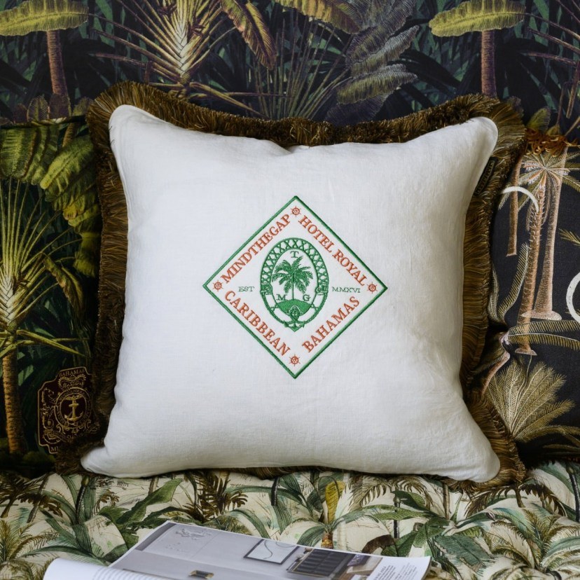 Το Διακοσμητικό Μαξιλάρι Hotel Royal LC40067 διαθέτει ένα μεγάλο κέντημα στην μπροστινή πλευρά που απεικονίζει ένα vintage σύμβολο της MINDTHEGAP. Στην πίσω πλευρά, το μαξιλάρι φέρει εντυπωσιακά σχέδια με τροπικά φυτά της ζούγκλας. Πρόκειται για ένα μαξιλάρι υψηλής ποιότητας, το οποίο διαθέτει λινή επένδυση με stonewash φινίρισμα. Φέρει πλούσια γέμιση από φτερά πάπιας, τα οποία του εξασφαλίζουν απολαυστική και αφράτη υφή. Σχεδιάζεται στην Αγγλία. Μόνο στεγνό καθάρισμα. Απαγορεύεται το πλύσιμο, τα λευκαντικά και το στεγνωτήριο.